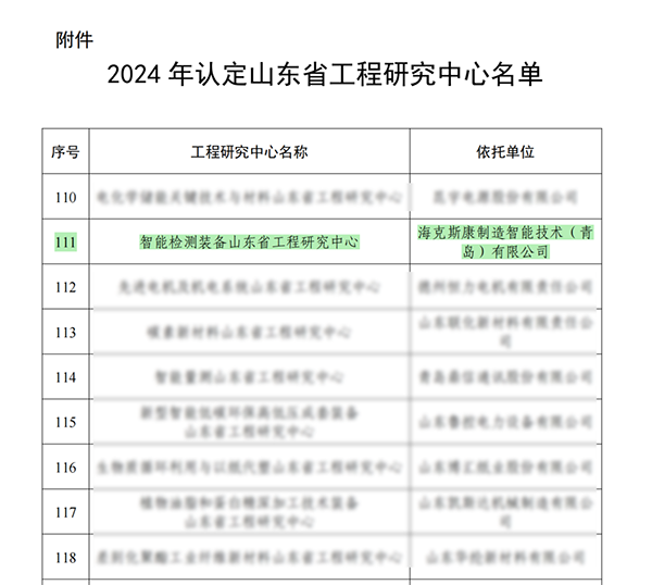 根据《山东省工程研究中心管理办法》有关规定,山东省发展和改革委员会组织开展了2024年度山东省工程研究中心申报认定工作。经评审论证,山东省发展和改革委员会发布了“关于公布2024年认定山东省工程研究中心名单的通知”,海克斯康制造智能技术(青岛)有限公司“智能检测装备山东省工程研究中心”成功获批,彰显了公司在该领域技术创新、人才培养、成果转化等方面的综合实力。