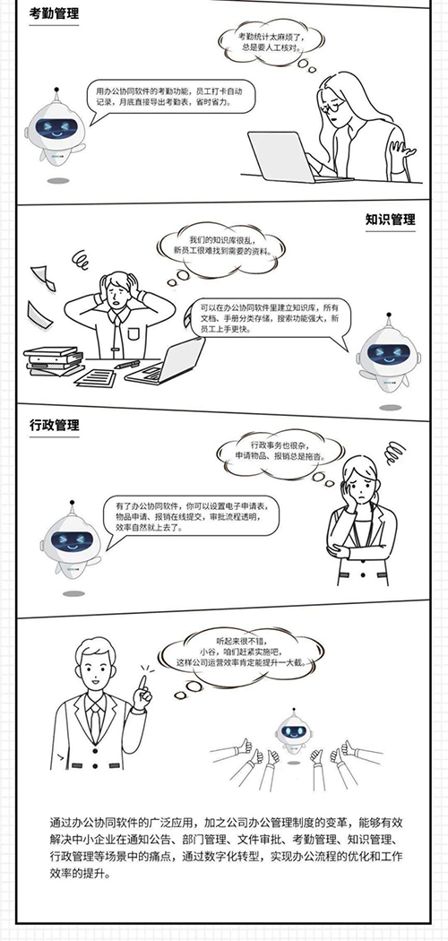 中小企业数字化转型迈出的第一步尤为关键如何构筑数字化基础,开展基础业务流程梳理和数据规范化管理进行信息技术简单应用,达到企业数字化一级水平,是企业登入数字化转型殿堂的“门槛石”。以小谷的经验,中小企业可以从经营管理数字化入手,以办公室为起点,开启办公协同和财务管理场景数字化转型往往能事半功倍!