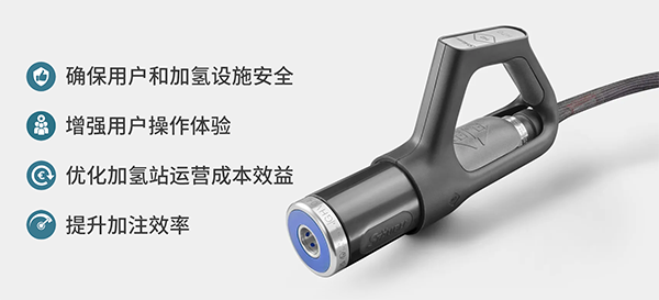 在氢能汽车加注领域,史陶比尔可提供成套的加氢解决方案,除主要的加氢枪之外,还包含拉断阀、存放支架以及软管产品,以确保整体方案完美集成。