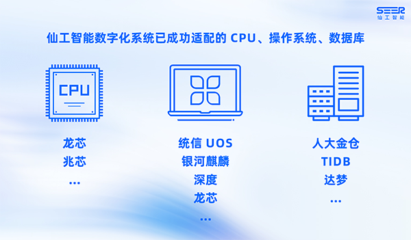 目前,仙工智能已完成多个信创相关软硬件集成测试与适配,广泛兼容、适配行业主流的国产芯片、国产数据库及操作系统。