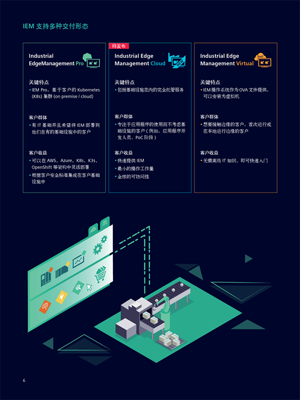 在边缘生态的建设中,创新是不可或缺的驱动力。西门子拥有成熟完善的工业边缘产品架构,包括工业边缘中心(IE Hub),工业边缘管理平台(IEM), 工业边缘设备(IED),满足了不同工业场景下的多样化需求。