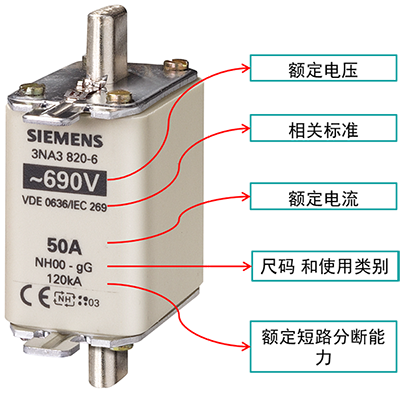 NH型熔断器主要参数有额定电压、额定电流、结构尺寸(000,00,1,2,3型)、额定短路分断能力、保护类别几项。