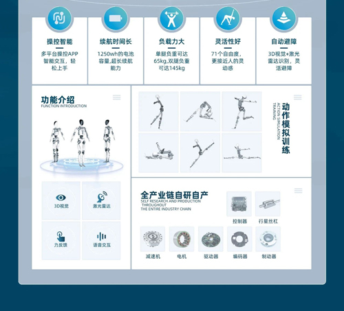 天链机器人的人形机器人产品经过了5个版本的迭代,最终在身高1.60米的纤细女性形体范围内,设计出了71个自由度,裸机重量仅37公斤左右,含电池在43公斤左右的超轻量人形机器人。
