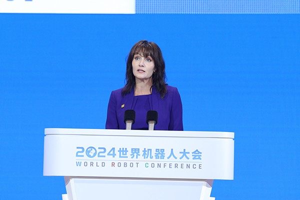 Marina Bill在大会开幕式致辞,并在主论坛上发表了一场关于全球机器人市场现状、趋势与展望的主题演讲。她指出:“近年来,机器人技术以其独特魅力和巨大潜力,正在重塑我们的世界。从工业生产到医疗保健,从家政服务到应急救援,机器人已经成为人类社会不可或缺的一部分。”