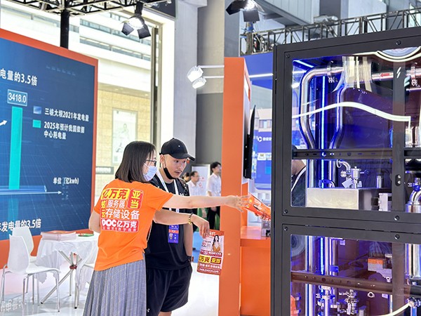 走近亿万克展台,“黑金刚”强势夺目,这便是亿万克自研冷板式液冷主力军——LCP-9000。本届数博会,亿万克在现场打造绿色数据中心体验区,以冷板式液冷+浸没式液冷的王牌组合,助力大数据迈入PUE低于1.3的“低碳时代”。