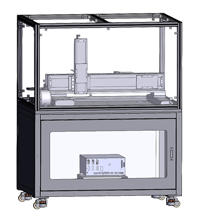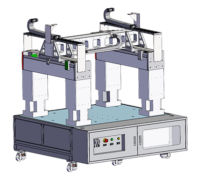 多轴模组应用展机采用C5研磨丝杆、CLASS10无尘模组,XYZ直交机器人、高速无尘拖链、高精度伺服电机,形成龙门单驱结构;