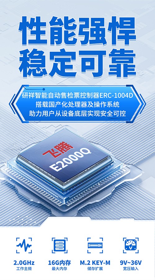 针对AFC系统的运行条件,研祥智能重磅推出新一代国产化自动售检票控制器ERC-1004D,适用于轨道交通行业的监控和管理,助力轨道交通建设,推动行业高质量发展。