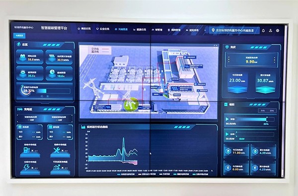 站在北京首个“光储直柔”零碳营业厅——北京环球供电服务中心营业厅的可视大屏前,光伏发电量、储能系统的充放电、汽车充电桩等用电数据及综合优化算法的实时运行情况和优化结果等尽收眼底。这块大屏正是西门子Smart ECX智慧能碳管理平台的“智慧”体现。而可再生能源消纳率提高近10%,用能效率较传统营业厅预计提高近20%,将是该营业厅可实现的节能成果。