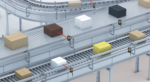 TOF型E3ZG系列光电传感器具备1m、3m的检测距离选项,满足输送线各类料箱、包裹通过检测、手臂抓取料箱定位等不同场景的应用需求。