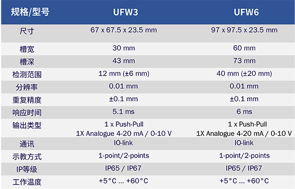 UFW超声波槽型传感器尺寸小,便于安装,可以搭配纠偏系统共同使用,提供高精度稳定检测。