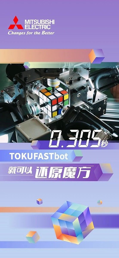 基于成熟的电机制造绕线技术,配备了三菱电机独特的高速、高精度定位技术;通过AI色彩识别算法,实现瞬时颜色识别,计算过程更快、更准确;采用三菱电机CC-Link IE TSN开放式工业网络,以及高速、高精度、高响应的J5系列伺服系统等产品,实现了设备之间的高速通讯,在0.009秒内完成了90度的旋转,确保整套系统在极高速度下稳定可靠运行。实现了0.305秒还原魔方,刷新了吉尼斯纪录。
