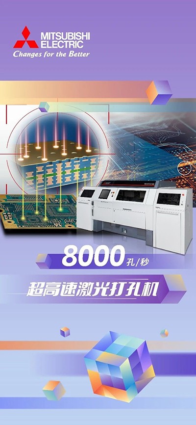 用于PCB打孔的激光打孔机,最新机型每秒钟打孔8000个,孔径达10微米,以行业领先的高精度高速度优势,在手机、电脑等3C产品领域应用广泛。所有核心技术(激光发振器、超高速扫描镜、聚焦镜)都是三菱电机自主研发制造。