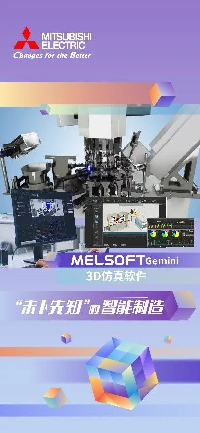 针对半导体行业缺“芯”的课题,展示了三菱电机数字化工业软件与半导体设备的数字孪生。在设备研发阶段,通过采用三菱电机的3D仿真软件MELSOFT Gemini,实现了动作方案的提前验证与流程优化,大大缩短了开发周期;定制开发了碰撞检知功能,以及不搭载传感器的恒力保压功能,全方位地保护芯片不被损坏,提高了设备效率。
