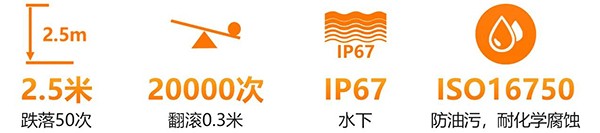 在耐用性上,其全包胶设计确保了产品能够承受从2.5米高处的50次跌落及0.3米高度的20000次翻滚,树立了行业新标杆。