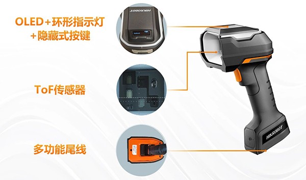 海康机器人为IDH9000配备了OLED屏和环形指示灯,读码信息、数据统计、连接状态、电池电量等信息一目了然,同时通过屏键联动还可以实现多种重点功能的配置。