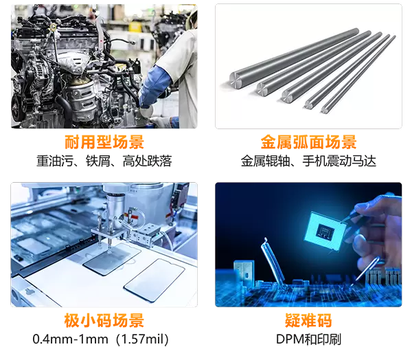 随着制造业信息化程度逐渐加深及追溯系统精细化,市场频现疑难码读取挑战,如微小、反光(阴阳码)及圆柱金属DPM码等。海康机器人充分利用AI深度学习的技术优势,采集大量样本进行训练,提升读码识别率与效率。