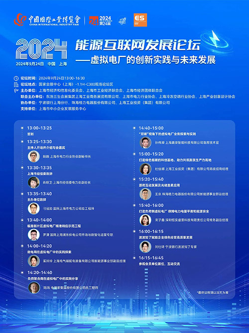 9月24日,2024中国国际工业博览会开展首日,“2024能源互联网发展论坛——虚拟电厂的创新实践与未来发展”在国家会展中心(上海)1.1号馆成功举办。论坛以“新质驱动•绿色转型•智能融合”为主题,邀请了业内专家学者就虚拟电厂行业发展现状、建设经验、实践案例等问题展开探讨和交流,为促进政、产、学、研、用的融合发展,推动虚拟电厂与电力市场的有机结合,以及新能源的可持续发展做出贡献。