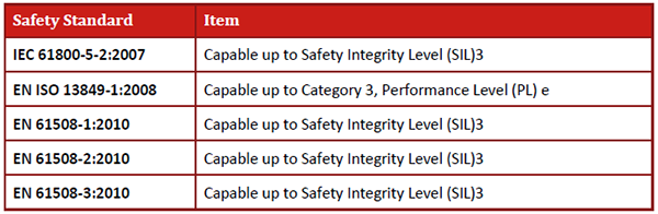 Gold系列伺服驱动器支持符合以下行业标准的安全扭矩关断 (STO):