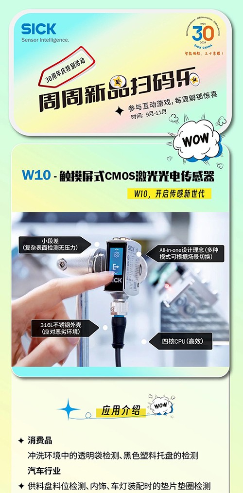 西克中国30周年庆 | 探索W10激光光电传感器,扫码赢好礼
