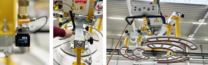 FEZER公司专精于真空搬运技术90余年,利用PQ Cube压力传感器监控手持式真空线圈搬运器的吸盘室真空状态,确保吸盘室的精确承载。传感器直观的红/绿显示变化让操作人员能够迅速识别真空状态,以便在搬运过程中及时做出反应,采取必要的安全措施。