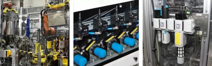 在洗碗机圆形部件的生产线上,PQ Cube确保夹具在恰当时刻精确地打开和关闭,通过直接安装在压力调节器的DIN轨道上进行实时监控。此外,另一个PQ Cube传感器监测维护单元的气动系统压力,为生产线上的其他机器人提供必要的压力支持,从而保障整个生产过程的连续性和部件的加工质量。