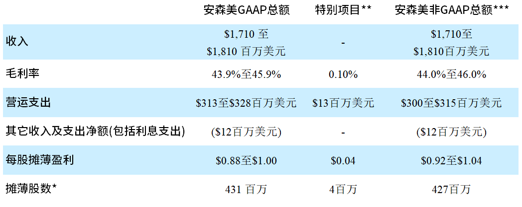 2024年第二季度展望下表概列安森美预计2024年第四季度的GAAP及非GAAP展望: