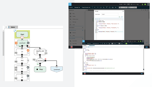 ● 可使用多种方法进行编程,包括手动引导、流程图编程或手动脚本编写。