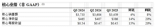 管理层预计第四季度销售同比增速加快,每股收益增速高于销售额,核心销售额约37.5亿美元,核心每股收益在0.53美元至0.57美元之间