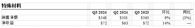 特殊材料第三季度销售额为5.48亿美元,环比上涨9%,主要得益于移动设备对于高端玻璃的强劲需求。第三季度净收益为7200万美元,环比增长14%。