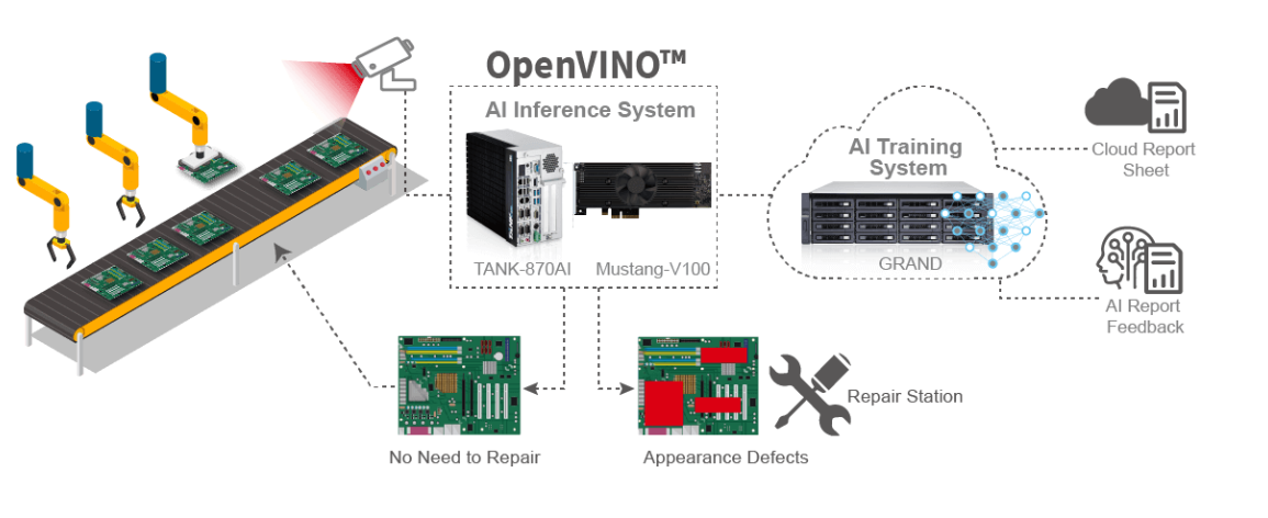 在制造过程中,可能会出现缺陷并影响质量。对 AOI 机器检测到的缺陷(尤其是外观缺陷)进行恰当的分类是很有必要的。缺陷分类的准确性越高,在检查和维修站上花费的成本就越少。iEi威强电的TANK AIoT Dev.Kit 可完美助力AOI机器检测。