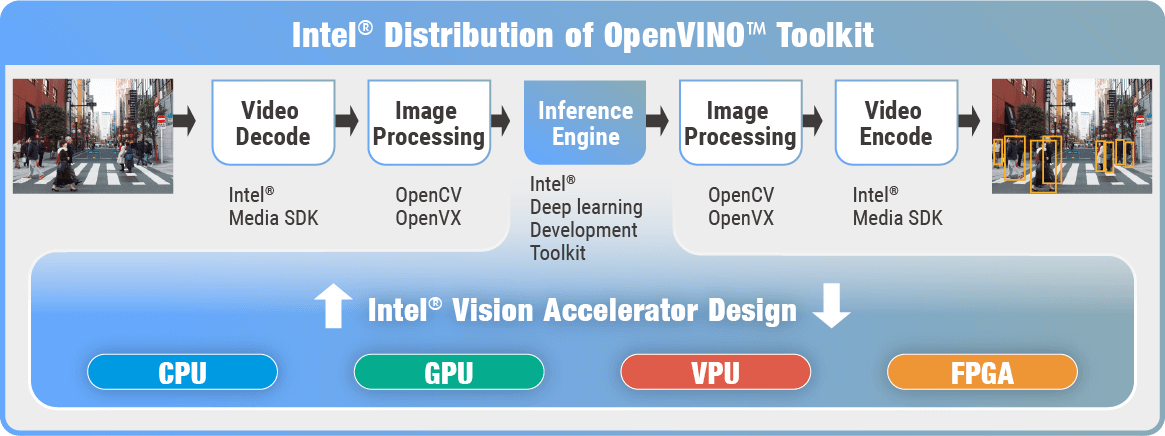 Intel® Distribution of OpenVINO™ Toolkit 基于卷积神经网络(CNN),OpenVINO ™可以将工作量分摊到各种 Intel® 平台上,并最大限度地提高性能。