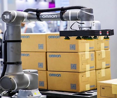 解决方案:利用协作机器人自动化码垛过程,实现快速、精准地堆放货物,减少人工操作时间的成本,提高产线效率。