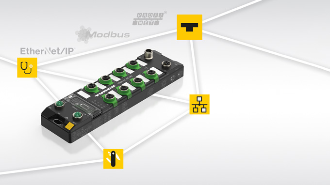 通过最近的固件更新,图尔克的TBEN-Lx-SE-M2管理型以太网交换机可完全集成到典型的工程应用中。这样可以将坚固耐用的IP67交换机作为主动站点用在Profinet、Ethernet/IP和Modbus TCP等现场总线网络中,并可以进行网络诊断。