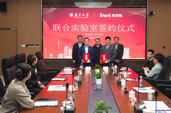 党的二十大报告指出:“教育、科技、人才是全面建设社会主义现代化国家的基础性、战略性支撑。为积极响应国家“双创”号召,英威腾与南京大学强强联合,共建“南京大学-英威腾工业传感器及精密驱动技术校企联合实验室”(简称“联合实验室”),于2024年12月5日在盛大的仪式中正式揭牌,标志着双方在科技创新与产学研合作领域迈出了坚实的一步。