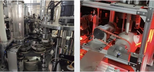 转盘式纸杯机(左)与输送线式纸杯机(右)