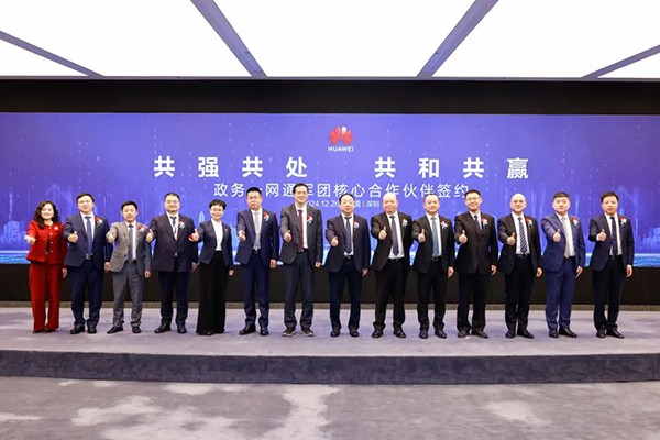 [中国,深圳,2024年12月26日] 华为技术有限公司(以下简称“华为”)与7家合作伙伴举行政务一网通军团合作伙伴签约仪式。本次签约代表华为与行业合作伙伴在政务与城市数智化领域持续展开更深入的能力合作。双方将围绕政务与城市数智化场景打造咨询规划、解决方案、集成、服务、运营等端到端的能力体系,共同提升客户体验,服务全球客户,实现合作共赢。