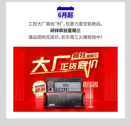 还在踌躇观望?还在犹豫时机?别再等待了!研祥疯狂星期三大羊毛超有料每一款优惠都直击你的心趴数量有限,先抢先得心趴福利团购有礼单次单台订购量≥500台且团购量前3名的订单王满足条...