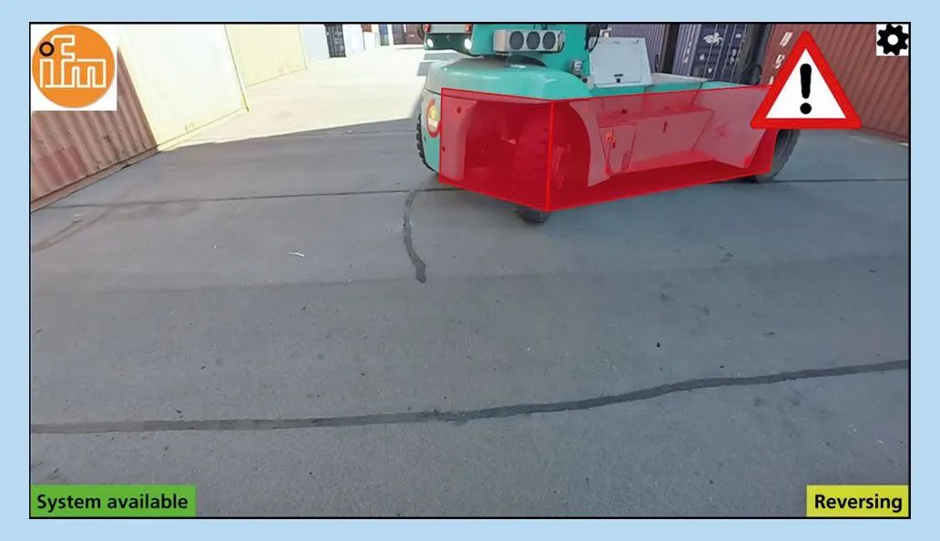 在这座繁忙的港口中,操作大型集装箱起重机(正面吊)需要在有限空间内精准操作,以预防碰撞事故。ifm提供的自动化防碰撞系统配备了3D摄像头,能够监控起重机后方区域,并在侦测到障碍物时及时警示驾驶员。
