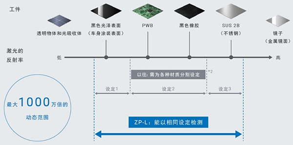*1. 动态范围表示可检测工件类型的范围。为可检测工件中反射光量最少的工件和反射光量最多的工件的反射率之比。