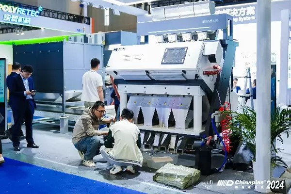 “同级循环×瓶到瓶闭环回收”联机演示将包含材质分选、挤出造粒、水下切粒、固相增粘、注吹成型这5个工艺。分别由美亚光电、艾斯瑞特、兆合机械、小班机械所提供的。这是首次在展会现场完整呈现PET同级循环的生产过程。