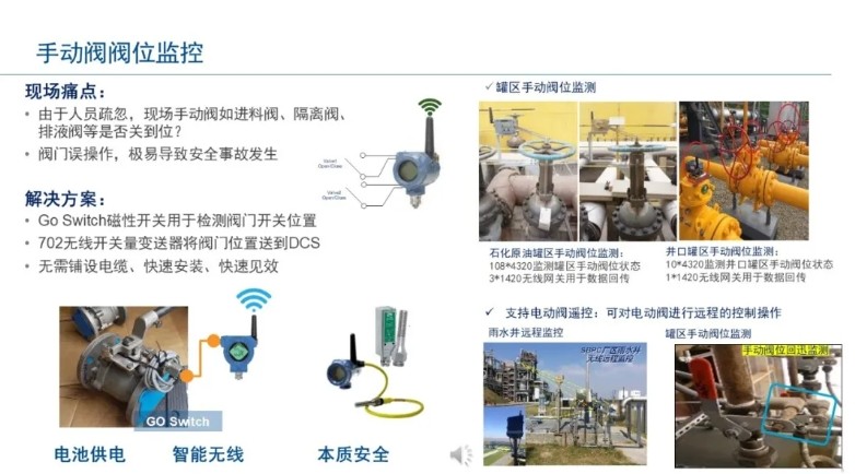 这些罐区无线解决方案,提供动设备振动、静设备腐蚀、安全阀状态、换热器状态、人工巡检检查等数据,消除过去许多因高成本或技术难度过大而无法安装仪表的应用盲点,构建坚实的数据基础,快速将数据转化为洞察力,打造一个智能罐区,让每个人都在更短的时间内能随时随地获得信息,高效可靠的数据管理助力深度运营,实现高效、安全和绿色可持续运行。