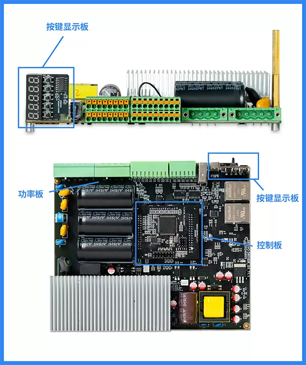 G32R501 400W EtherCAT总线型高压伺服控制器参考方案,由功率板、控制板、按键显示板组成。