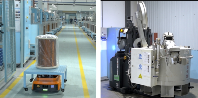 除了3D视觉、2D视觉等机器视觉智能设备之外,创兴电机还引入了多台海康机器人的潜伏、叉取机器人及RCS机器人控制系统,自动化搬运成品定/转子组件及组装配件、漆包线、高温铝水等物料。