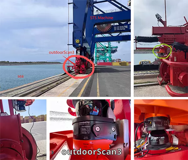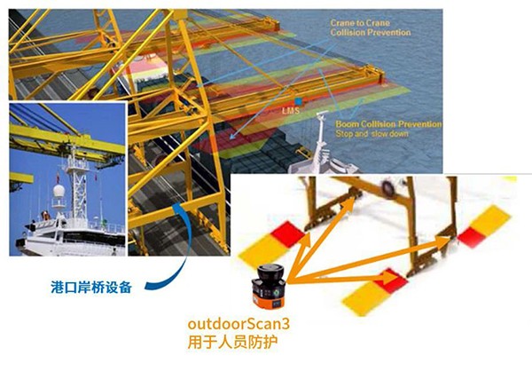 根据终端要求,现场的自动化设备在运行及维护检修过程中,需要可靠地保障现场人员的人身安全,相关系统需要符合相应的安全标准。为此,我们提出在每个轮胎吊搭配4台outdoorScan3,分别安装在设备的4个角落,同时借助安全控制器,实现设备运行方向上的人员防护。