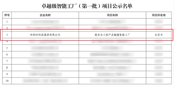 近日,工业和信息化部公布了2024年度智能工厂梯度培育行动申报结果,和利时高安全工控产品敏捷智能工厂成功入选“卓越级智能工厂(第一批)项目”。