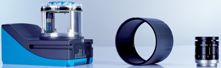 从下图可以看出,Inspector8301主要包括相机本体、光学附件、线缆三部分,光学附件包含镜头、照明、保持器、光学保护罩四大块,本体上自带USB 调试接口、双端口ProfiNet及EtherNet/IP现场总线及8个状态指示灯等等,这些友好直观的用户设置极大提升了用户体验。