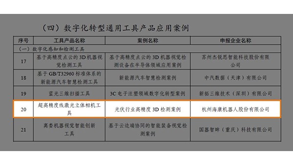 近日,工业和信息化部办公厅公布2024实数融合典型案例名单,海康机器人“超高精度线激光立体相机工具-光伏行业高精度3D检测案例”脱颖而出,入选其中的数字化转型通用工具产品应用案例名单。