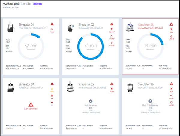简而言之,蔡司智能服务看板是一套智能化系统,能够实时、精准地呈现一台乃至多台蔡司三坐标设备的关键性能指标与使用详情。无论您是在办公室,还是辗转于各地出差途中,只需借助网络,随时随地即可查看设备实时状态,优化测量流程规划。一旦设备出现异常状况,系统将即刻发出通知。凭借高度透明化的信息,用户可以全方位监控设备,确保三坐标在测量作业中稳定、高效运行,为生产保驾护航。