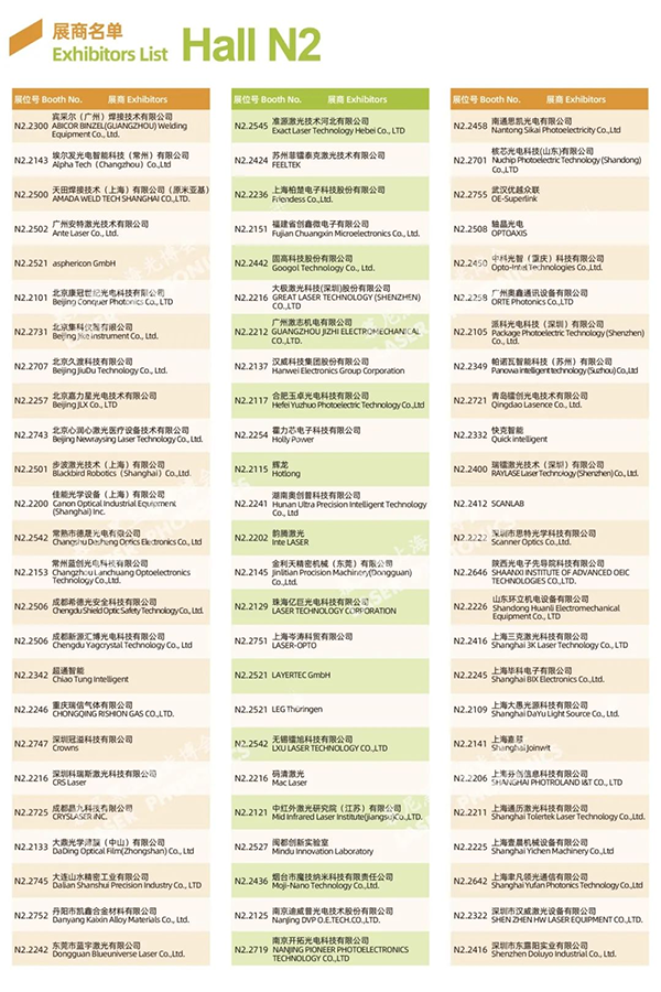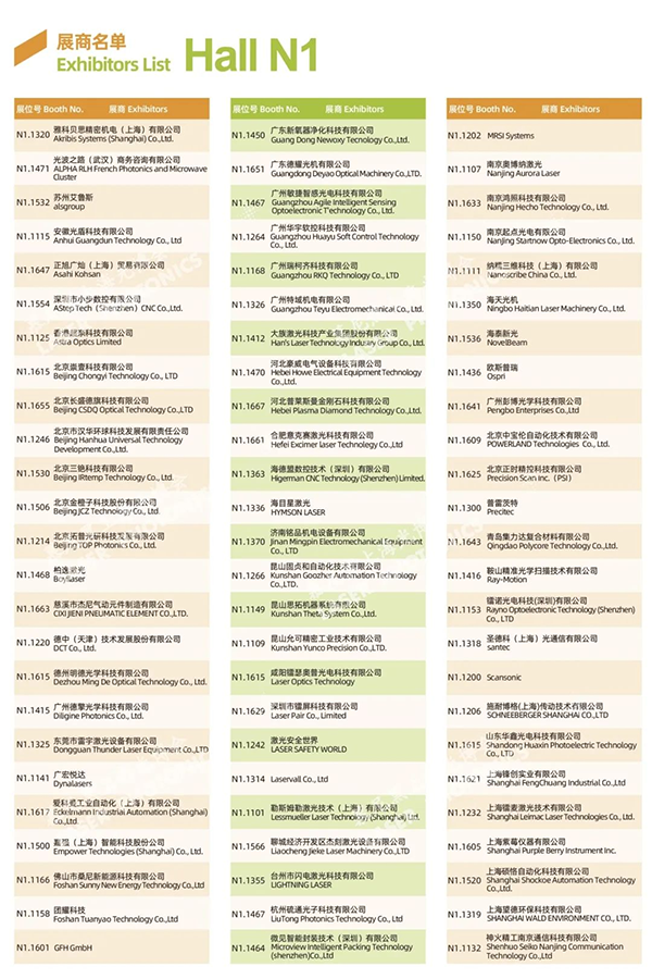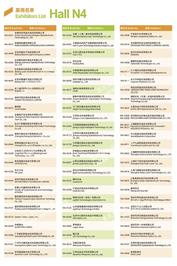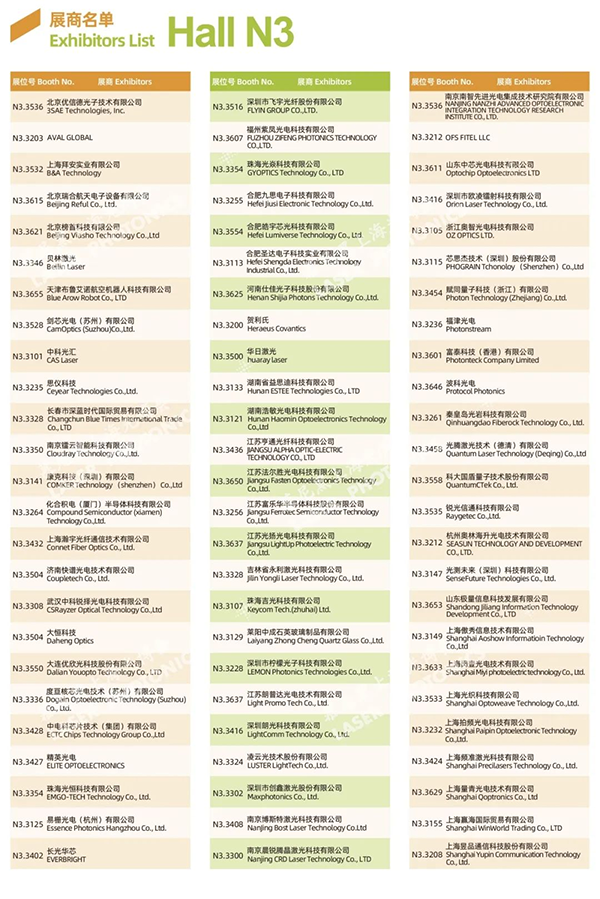 N3馆(激光器与光电子/集成光子及量子专区)展位图
