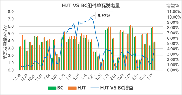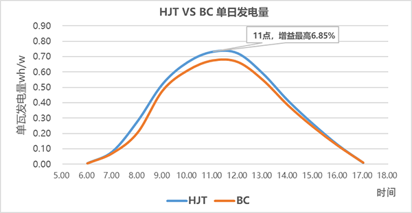 图2 HJT VS BC 组件单日单瓦发电量